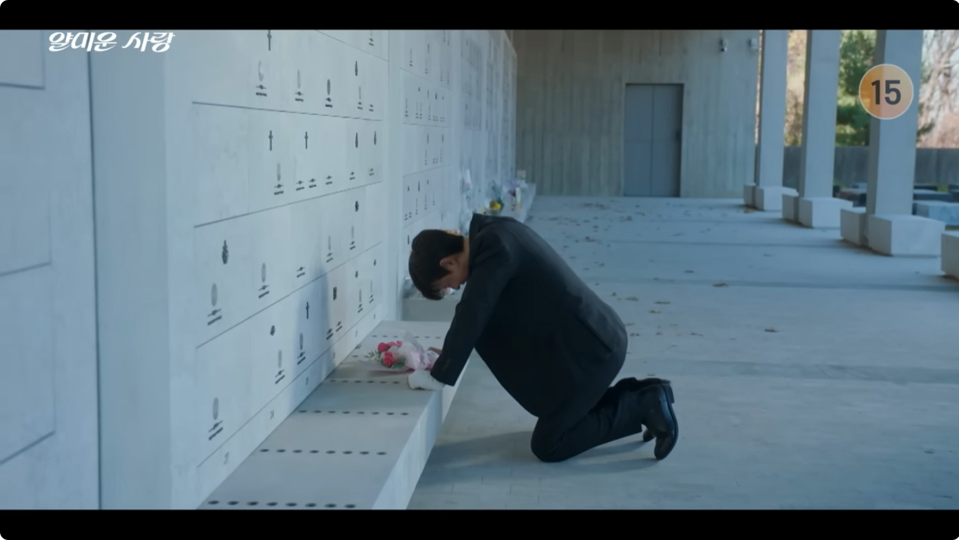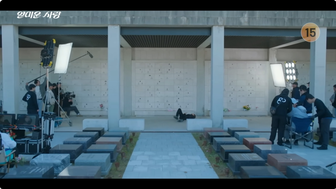 주인공 현준(이정재)은 공항으로 떠나는 정신(임지연)을 보지 못한 채 극 중 인기 드라마 '착한 형사 강필구'의 마지막 촬영현장에서 오열합니다.